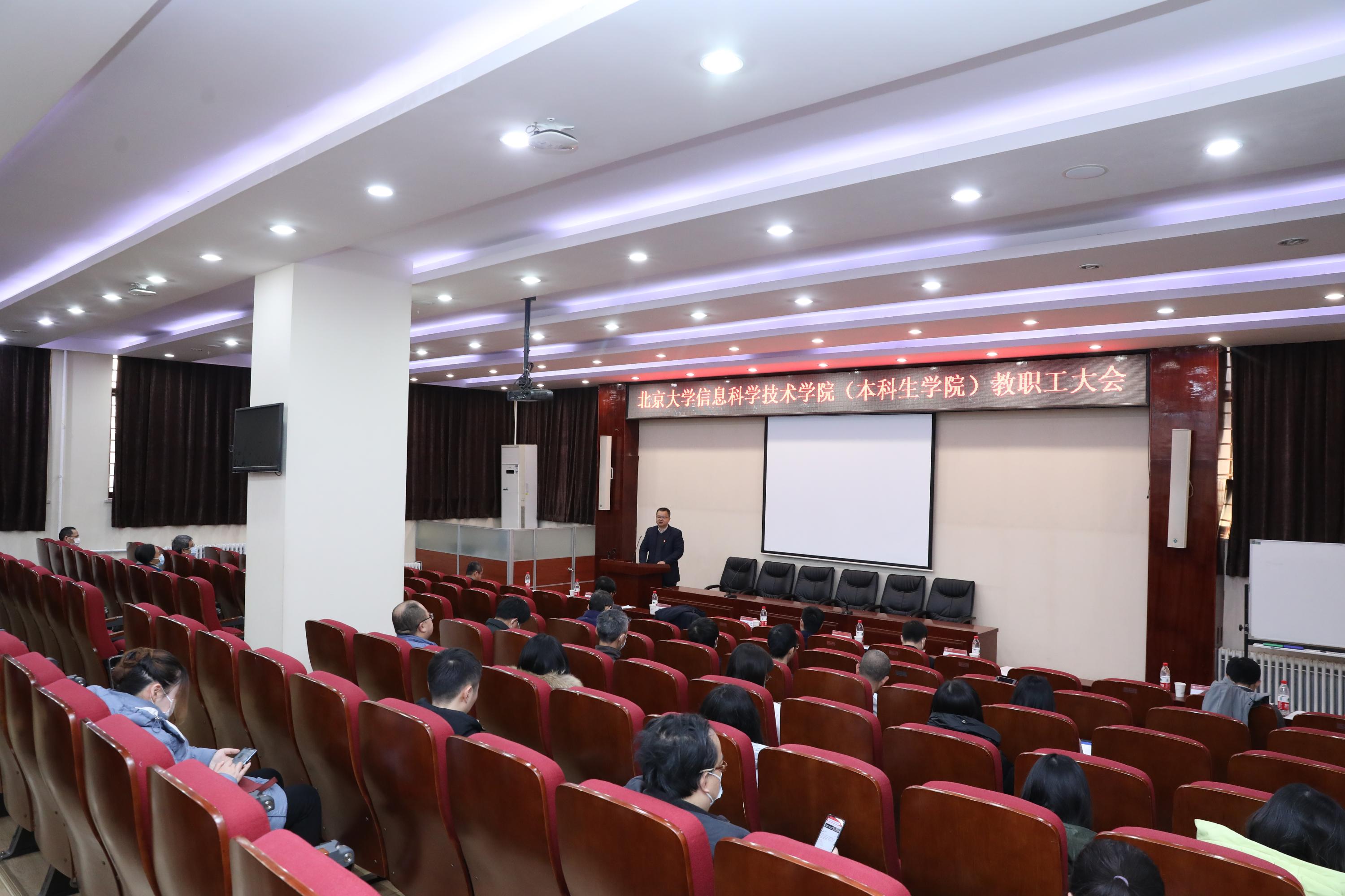 2022年1月13日上午,北京大学信息科学技术学院(本科生学院)在理科2号楼举行教职工大会,北京大学党委常委、副校长张平文院士,党委组织部副部长刘雨龙以及学院教职工40余人参加大会。刘雨龙宣读了学校通知,宣布魏中鹏、侯士敏及贾方健三位同志任命决定,并对相关选拔任命工作进行了说明。三名新上任同志依次进行任职发言,张平文作总结讲话。
