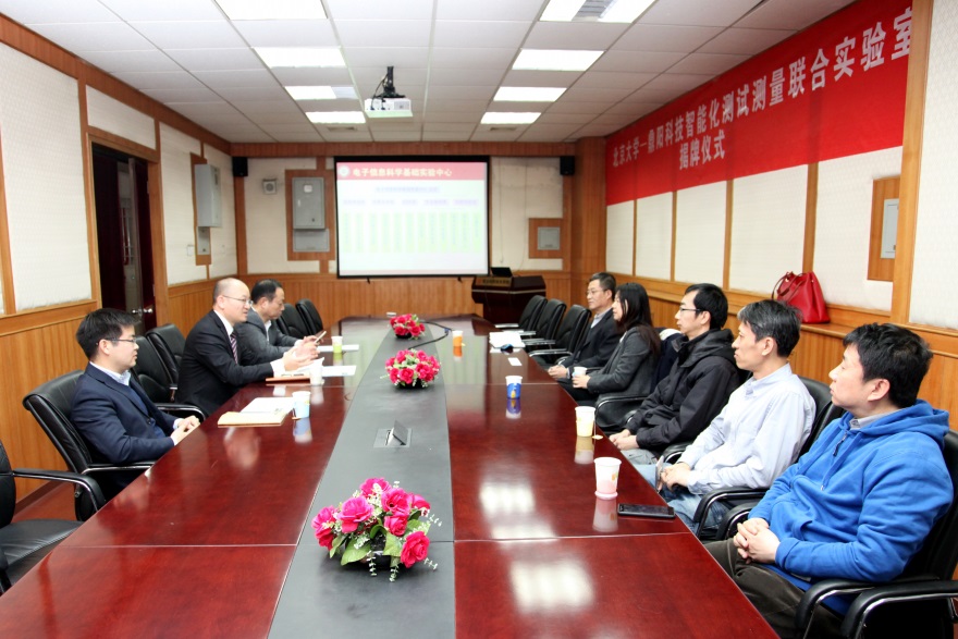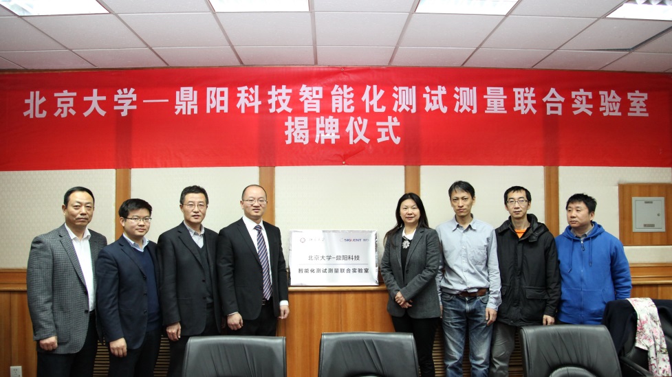 2017年3月22日上午10:30,“北京大学-鼎阳科技智能化测试测量联合实验室” 在北京大学电子信息科学基础实验中心成立,并在理科2号楼2111举行了启动仪式。信息科学技术学院教学副院长李文新教授、电子信息科学基础实验中心主任、教学所所长王志军教授、教学所副所长毛新宇副教授、杨延军博士,鼎阳科技董事长兼总裁秦轲先生,华北大区经理陆朝亮、北京恒达集电总经理郭华,以及教学所的相关老师等一同出席了启动仪式,会议由王志军教授主持。