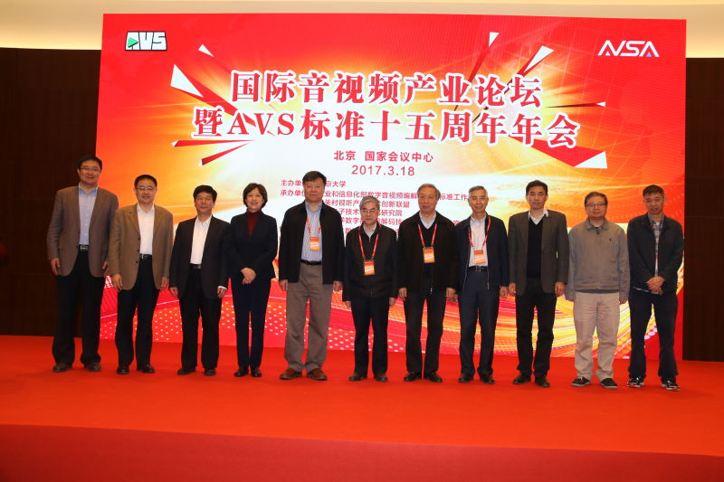 2017年3月18日,由数字视频编解码技术国家工程实验室、北京大学信息科学技术学院数字媒体研究所承办的国际音视频产业论坛暨音视频编解码技术标准(audio video coding standard, AVS)十五周年年会在国家会议中心隆重举办。北京大学校长林建华、工业和信息化部电子信息司司长刁石京、国家新闻出版广电总局科技司司长王效杰、国家发展和改革委员会高技术产业司副司长孙伟等莅临并讲话。会议由信息学院“长江学者奖励计划”特聘教授、AVS工作组秘书长黄铁军教授主持。