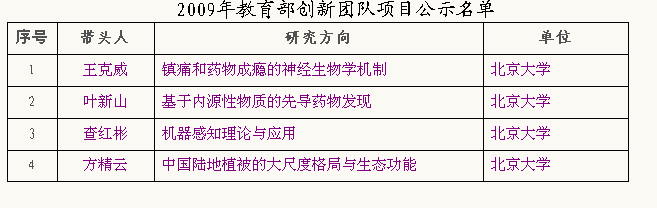 关于2009年度教育部候选创新团队项目公示的通知