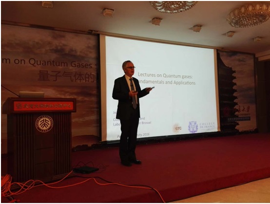 会上,法国科学院院士、欧洲科学院(European Academy of Sciences)院士、欧洲人文和自然科学院(Academia Europaea)院士、法兰西学院教授Jean Dalibard应邀以《冷原子气体的相干和超流》(Coherence and superfluidity of cold atomic gases)、《低维量子流体和Berezinski-Kosterlitz-Thouless相变》((Low-dimensional quantum fluids and the Berezinski-Kosterlitz-Thouless transition)和《中性原子的人工规范场与量子拓扑相变》(Artificial gauge fields for neutral atoms:When topology meets with experimental physics)为题,先后做了三场学术报告。