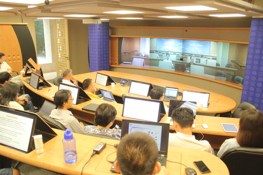 位于未名湖北岸的北京大学斯坦福中心是两校进行教学、科研交流的基地,配有先进的视频会议系统,通过大屏幕可以实现与斯坦福大学在同一会议室进行面对面交流的“沉浸式”效果。北大信息学院田永鸿教授、王亦洲研究员、熊瑞勤研究员、马思伟教授、段凌宇副教授,中国科学院计算技术研究所王瑞平副研究员,以及斯坦福大学的六位代表分别做了学术报告。双方就各自最新研究成果展开充分交流。由于双方的研究方向高度相似,研究进展也都处于国际前沿,因此焦点集中,讨论深入,并就后续合作达成了具体计划。会议效果显著,双方都认为有必要采用这种方式定期交流,共同发展。