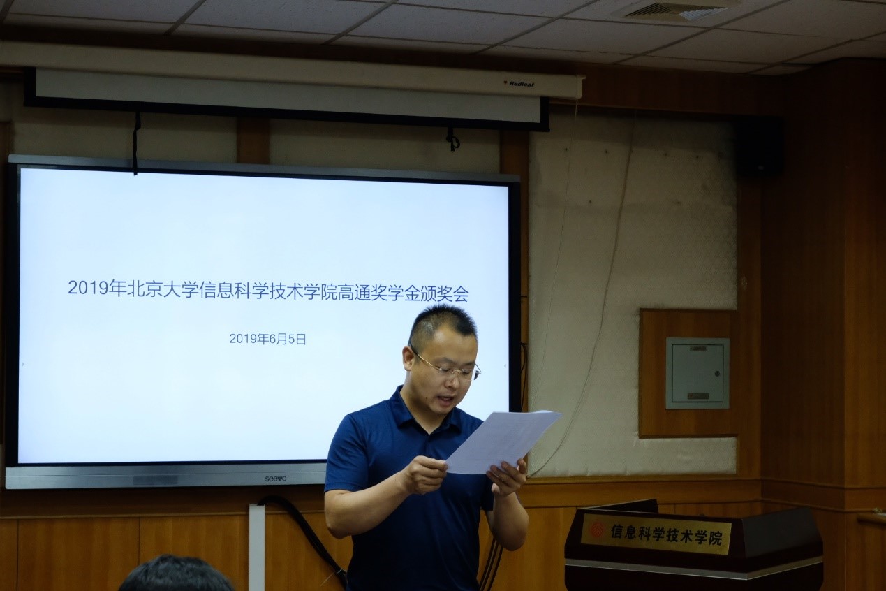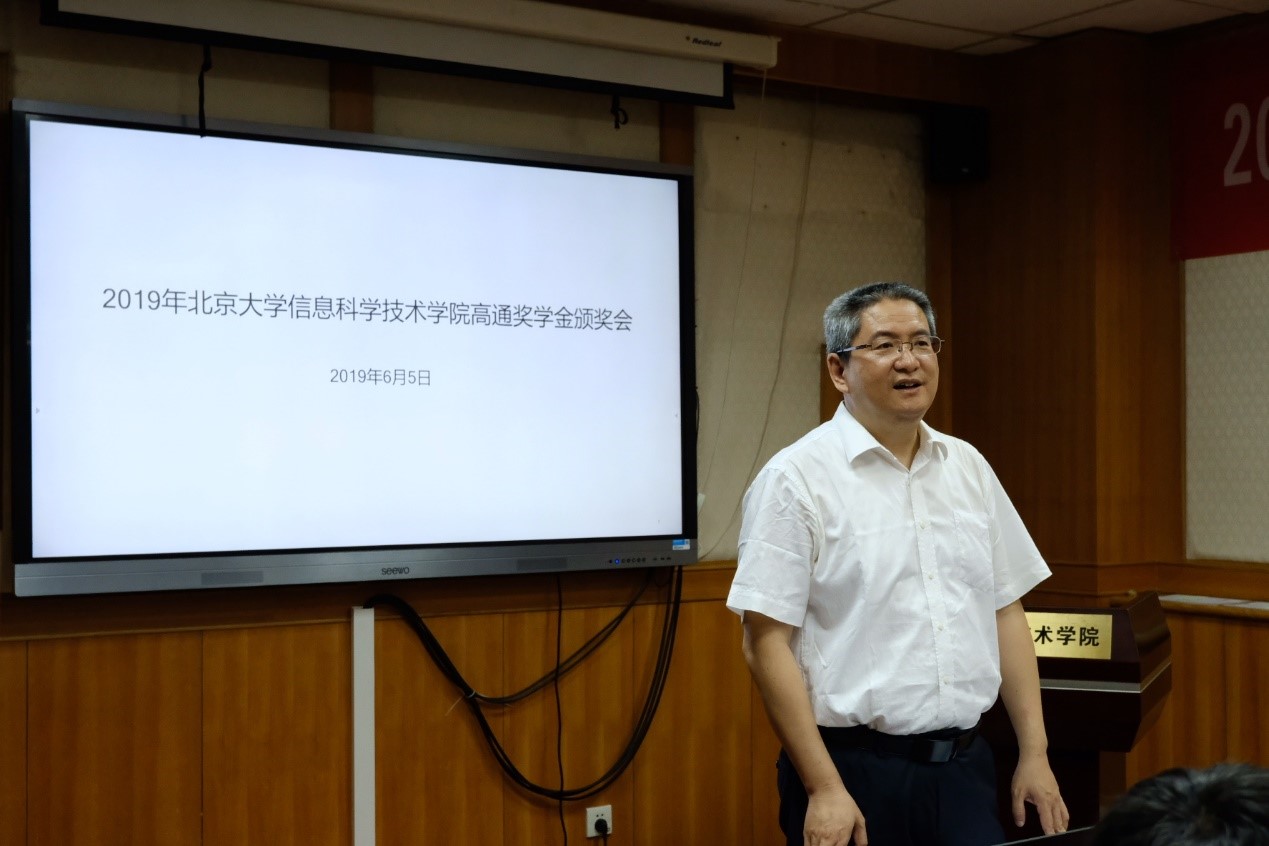 6月5日上午,2019年北京大学信息科学学院高通奖学金颁奖会在北京大学理科二号楼2111会议室顺利举行。北京大学信息科学技术学院常务副院长谢冰、党委副书记熊校良、电子学系副主任兼现代通信研究所所长宋令阳、智能科学系副主任邓志鸿、数字媒体研究所副所长马思伟、美国高通公司中国区研发负责人兼工程技术总监徐晧博士、高级资深工程师黄寅先生、人力资源部余萌萌女士以及获得本年度高通奖学金的同学们出席了颁奖会。颁奖会由美国高通公司中国政府事务部的曹楠女士主持。