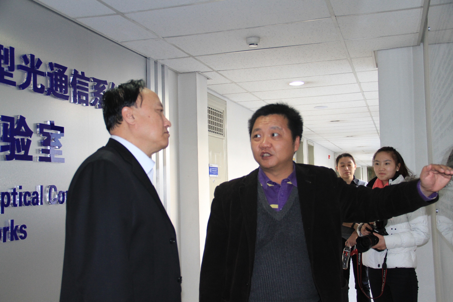 朱善璐书记视察区域光通信网与新型光通信系统国家重点实验室 2012年2月18日下午,校党委书记朱善璐到信息科学技术学院区域光通信网与新型光通信系统国家重点实验室(北京大学实验区)调研。