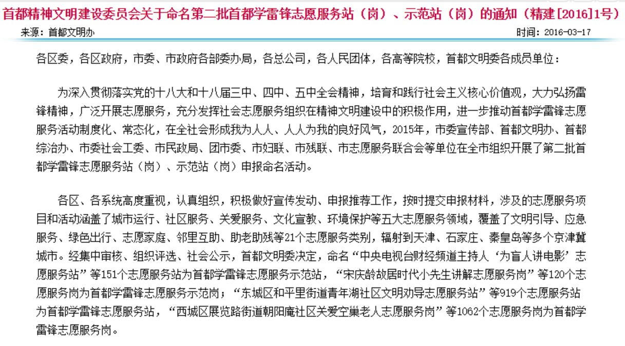 14/04  【喜讯】学院青协获评“首都学雷锋志愿服务岗”为深入贯彻落实党的十八大和十八届三中、四中、五中全会精神,培育和践行社会主义核心价值观,大力弘扬雷锋精神,广泛开展志愿服务,充分发挥社会志愿服务组织在精神文明建设中的积极作用,进一步推动首都学雷锋志愿...