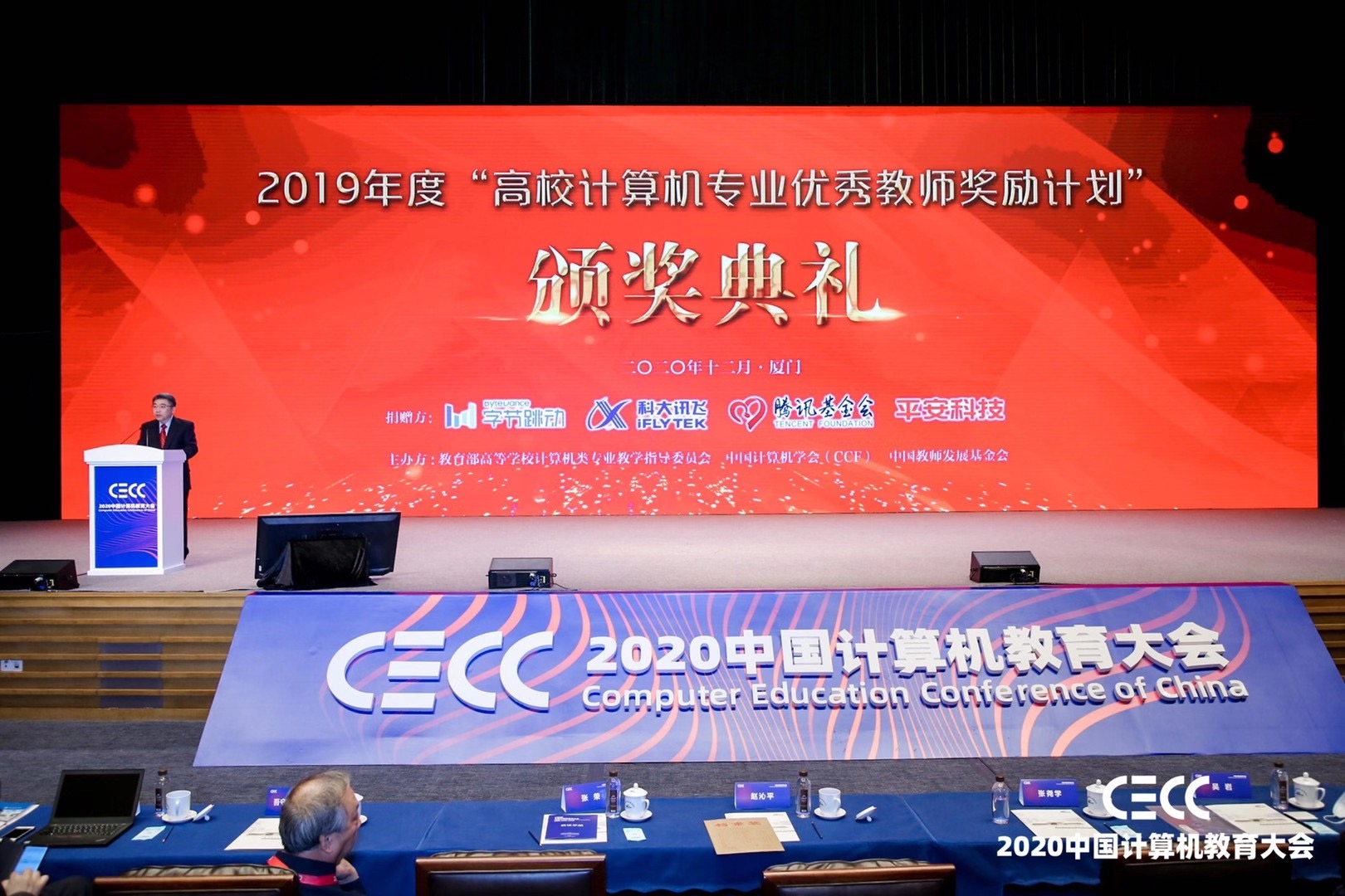 12月19日,以“新变局、新技术、新机遇”为主题的2020中国计算机教育大会(CECC2020)在厦门举行。19日上午2019年度高校计算机专业优秀教师奖励计划颁奖典礼在大会开幕式后举行。北京大学信息科学技术学院计算机科学技术系李胜、陈向群、陈钟、程旭等4位老师与其他高校50位教师一起,获得由教育部高等学校计算机类专业教学指导委员会、中国计...
